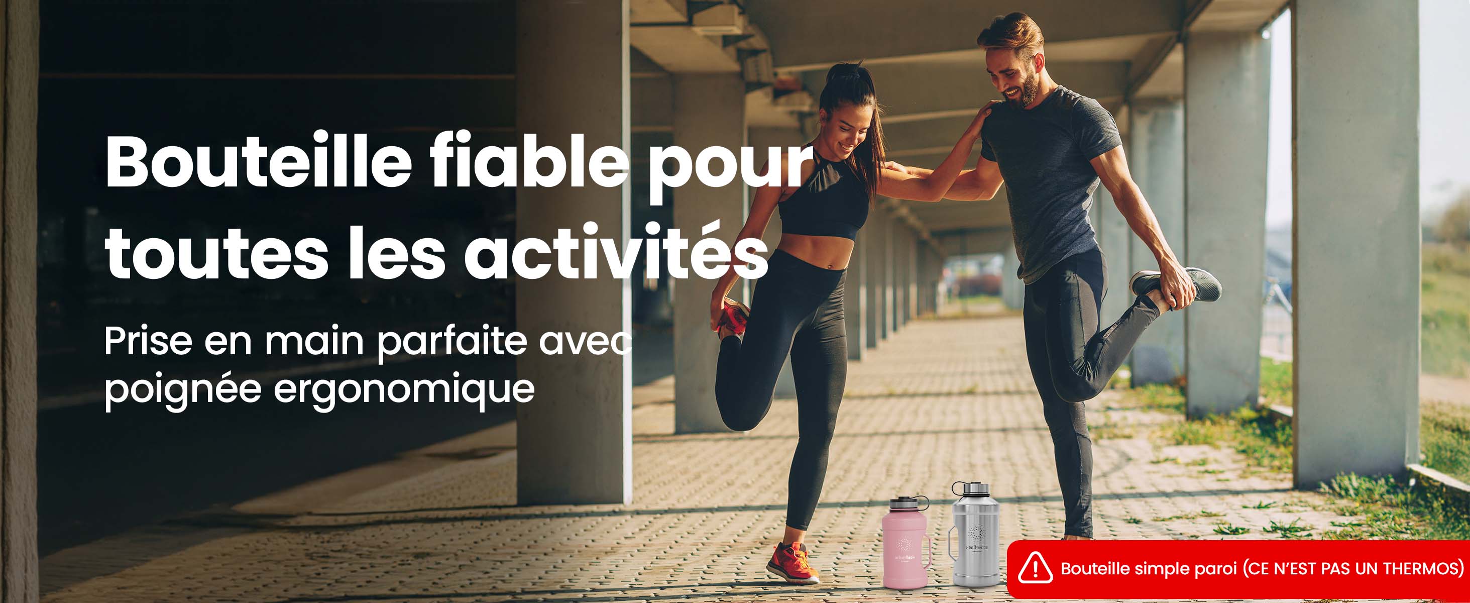La bouteille est solide. J’ai pris la plus grande (2,2 L). Si vous êtes une femme, il faut deux mains pour la soulever et boire, le diamètre est large. Bon polyvalent, fait son boulot. Pour moi bien mieux que ces bouteilles en plastique bon marché.