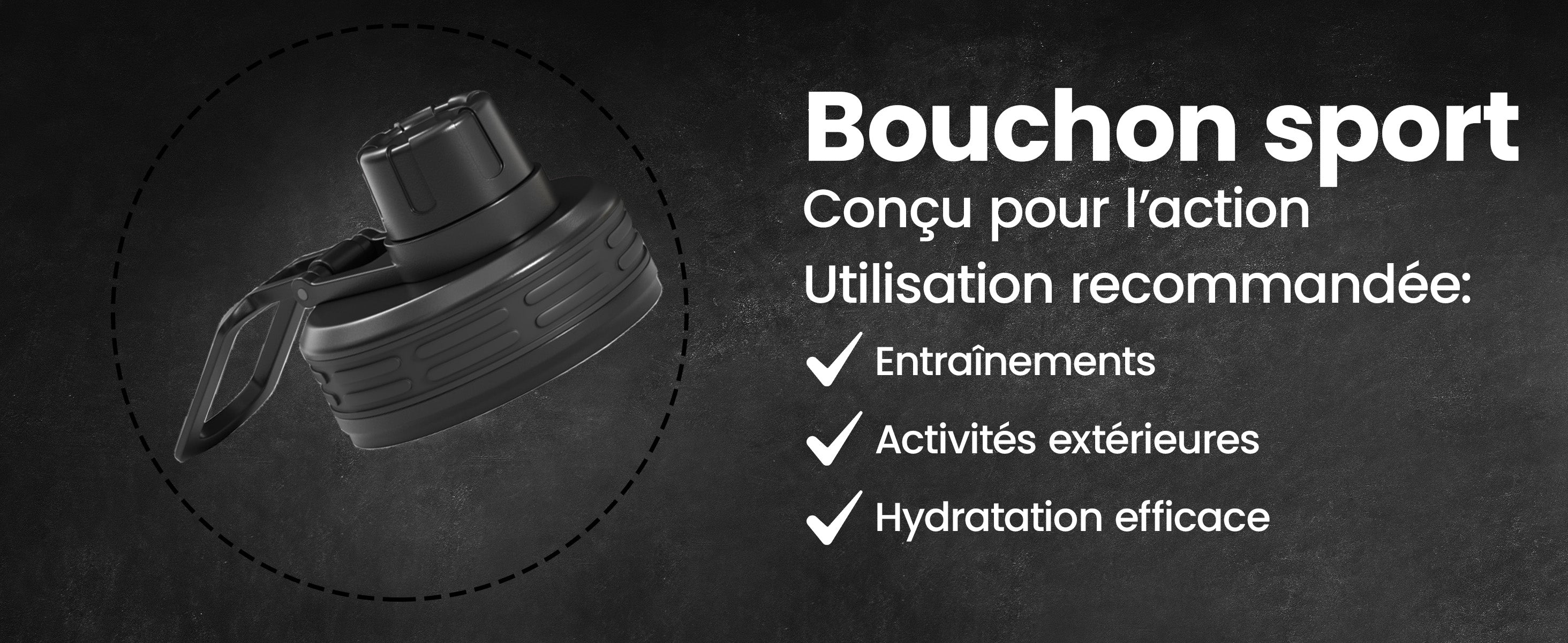 Trois bouchons 100 % étanches : standard, sport et paille.