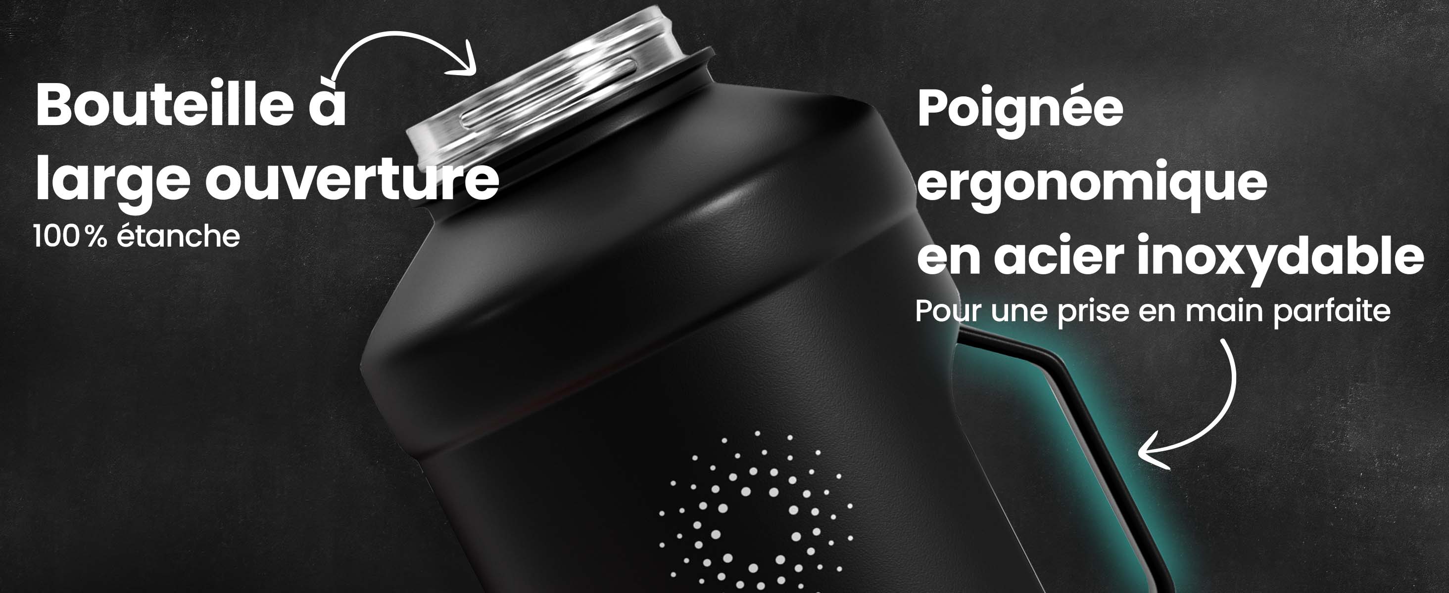 Les bords intérieurs arrondis et le goulot large et pratique de la bouteille facilitent le nettoyage et le remplissage, même avec de gros glaçons.