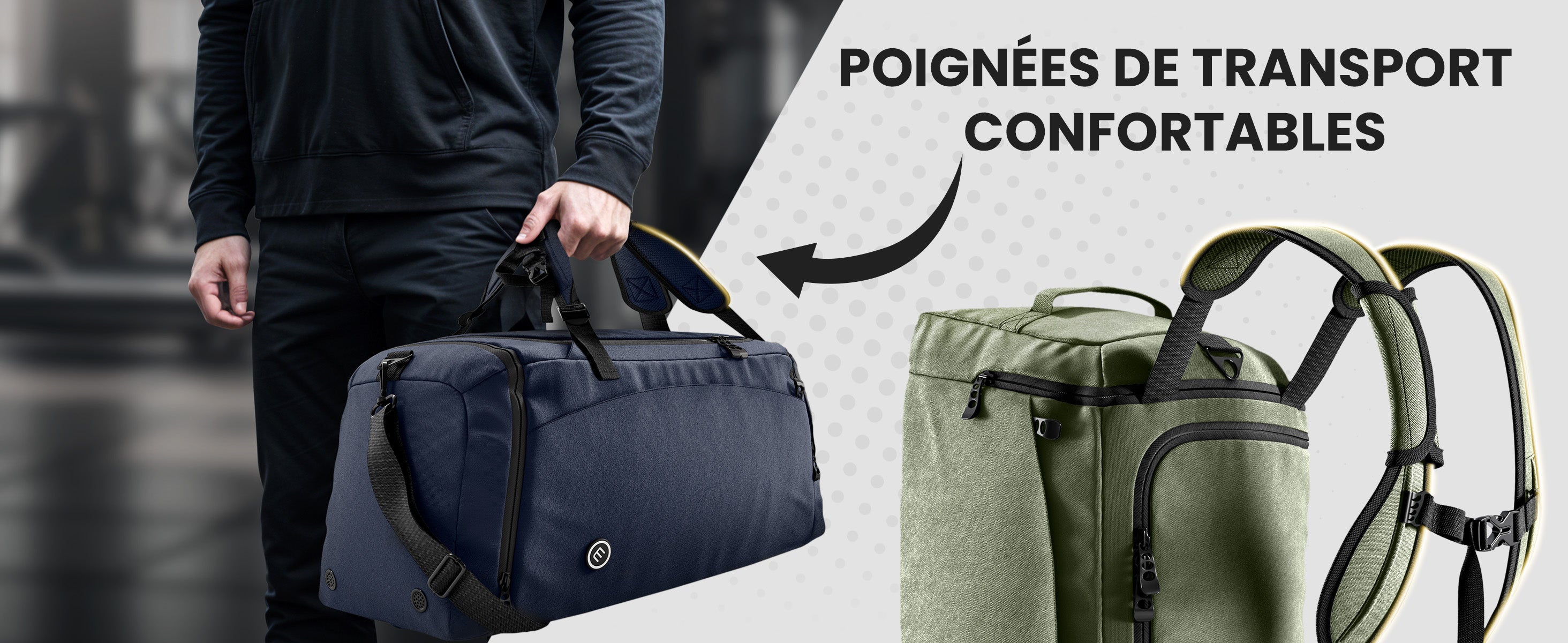 Portez trois façons: épaule, crossbody ou sac à dos pour gymnase, voyage et week-end