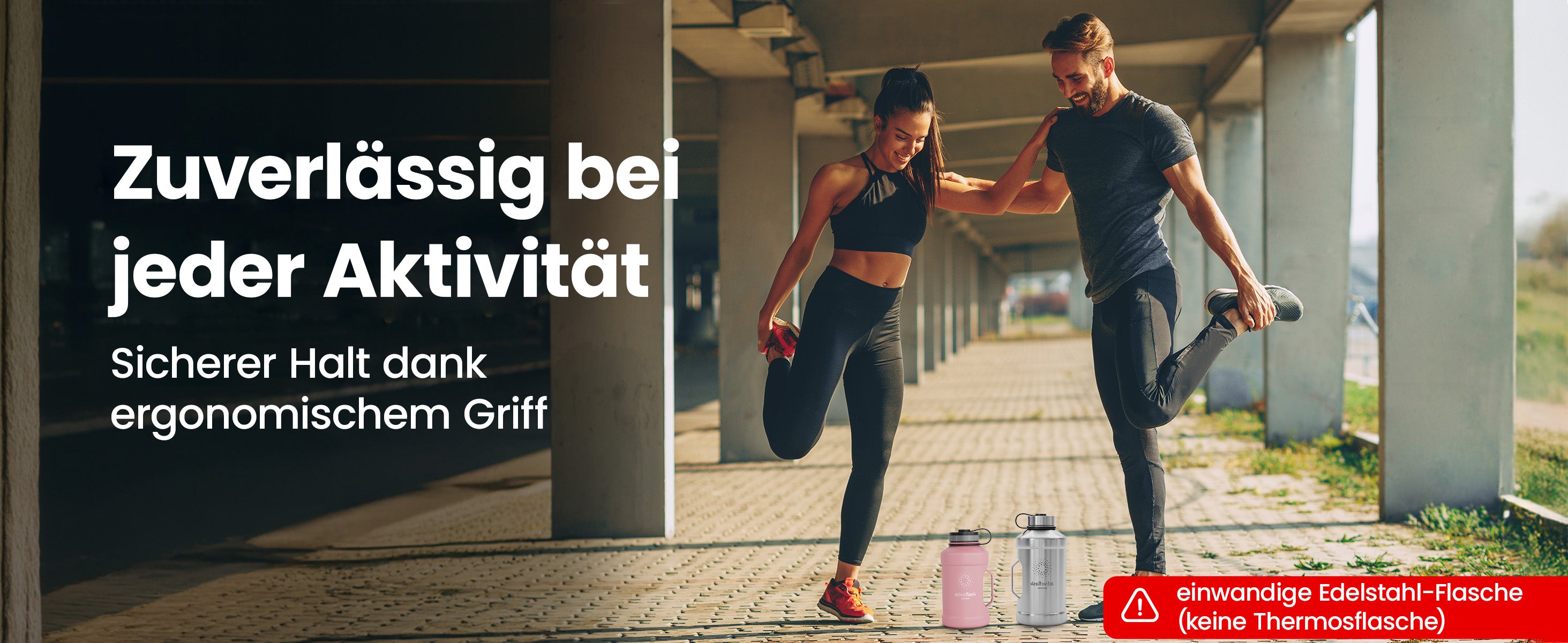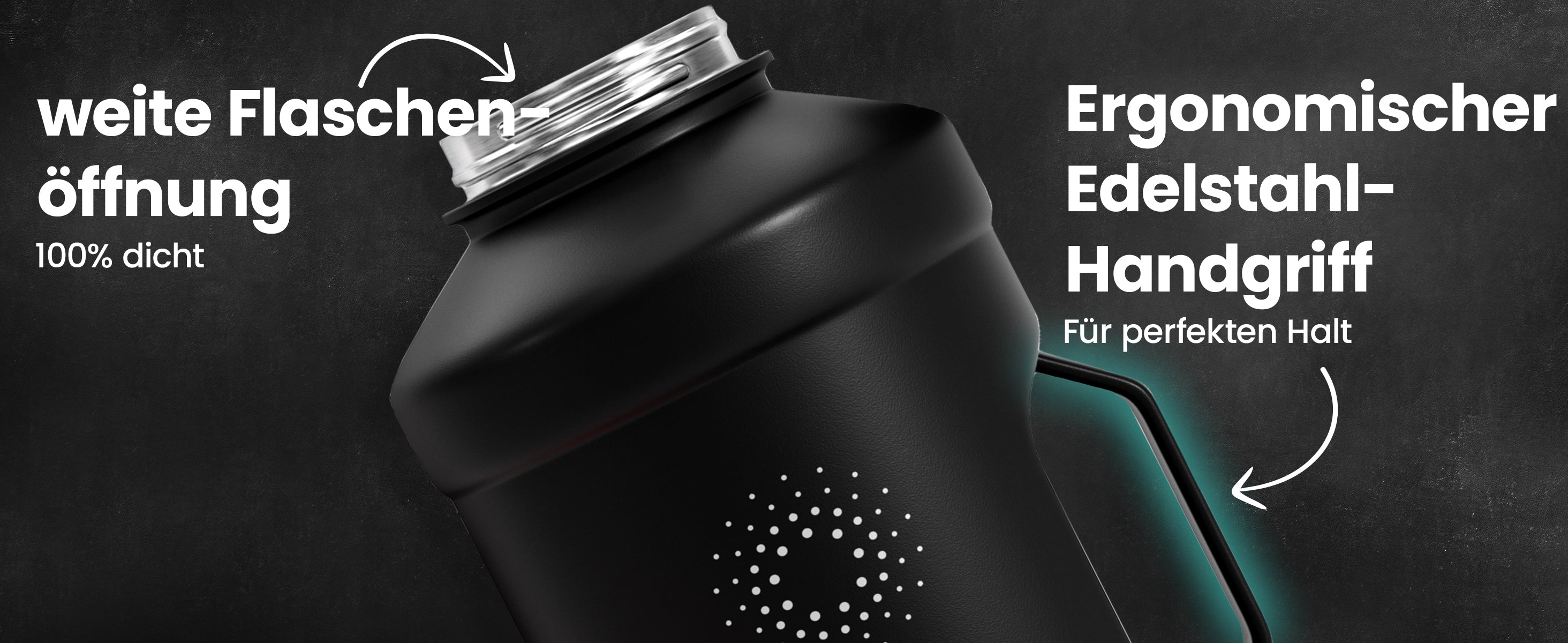 XL Active Flask: große Edelstahlflasche mit 2 Riemen, Grip & 3 Verschlüssen.