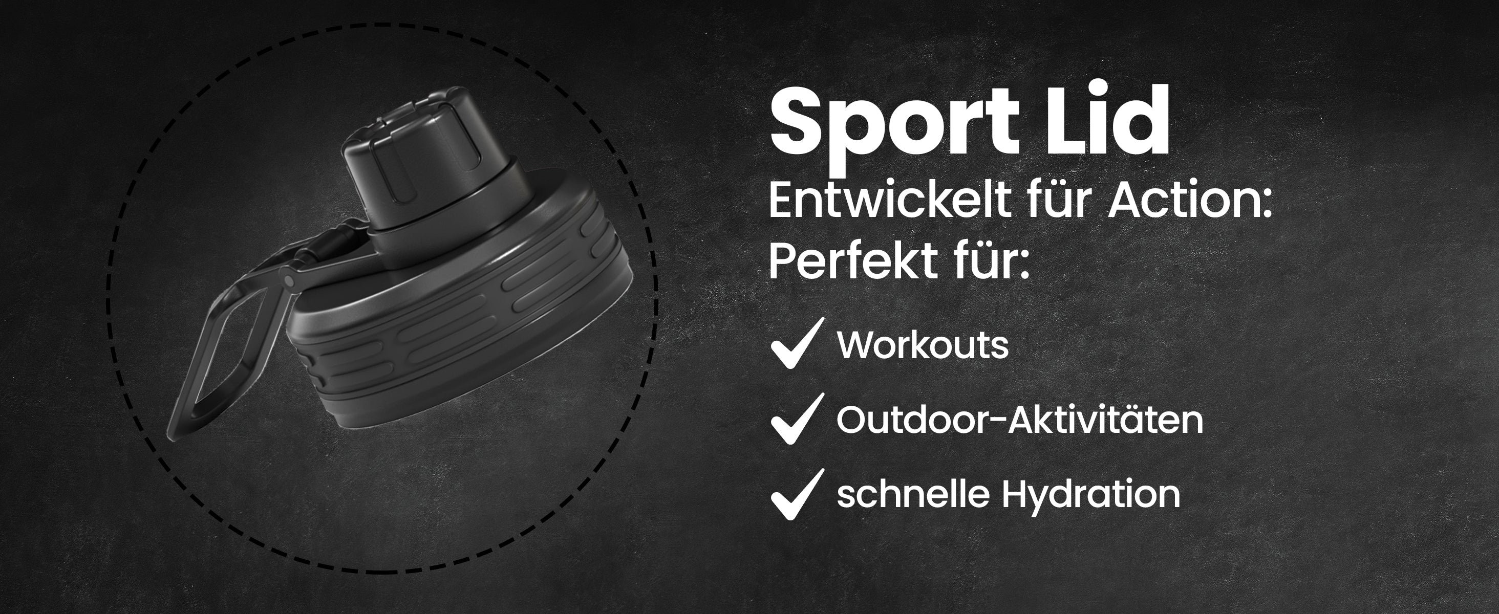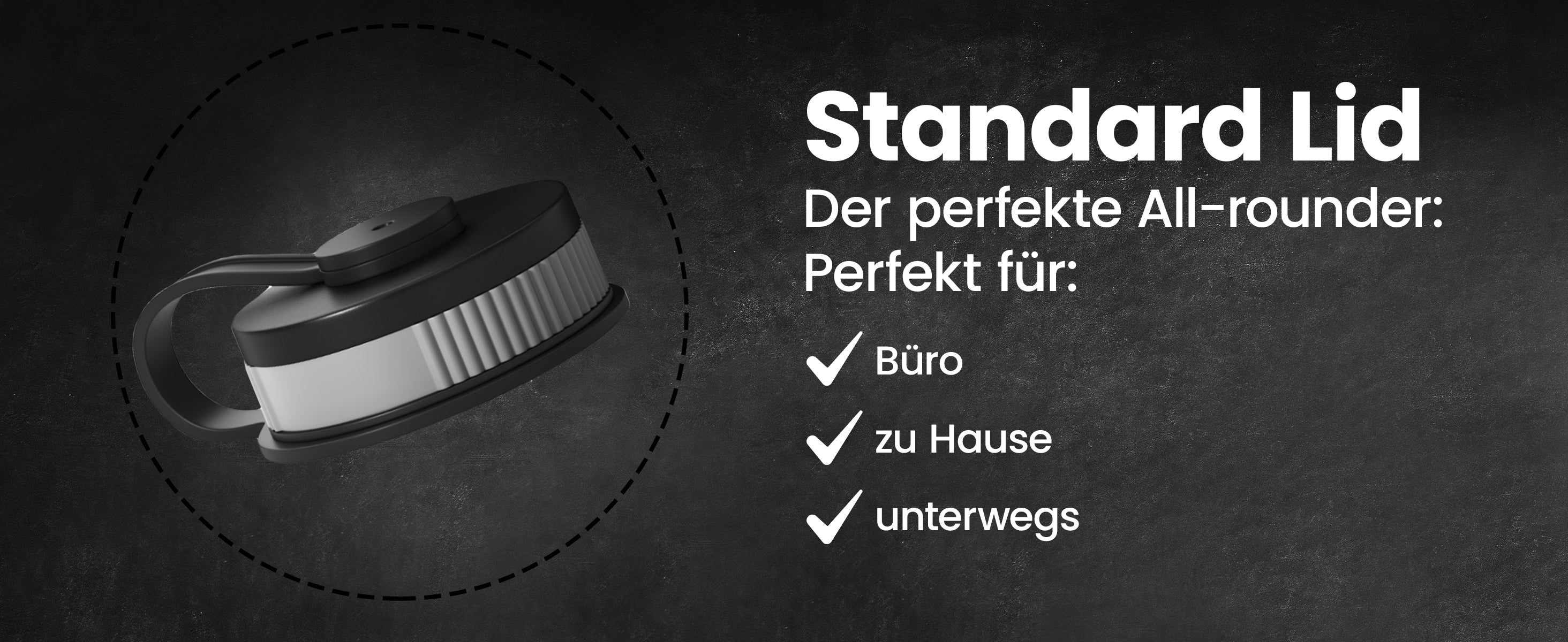 Drei 100% auslaufsichere Deckel: Standard, Sport, Strohhalm.